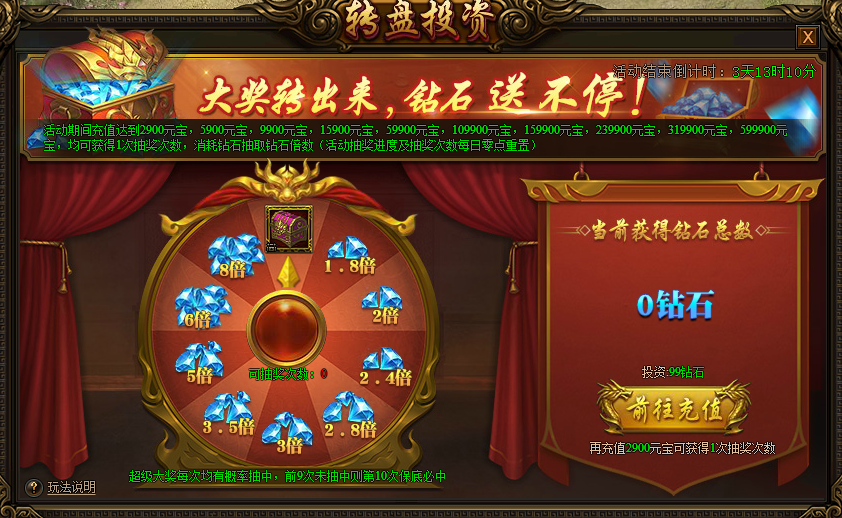 活动期间,每充值一定档位可获得一次抽奖次数